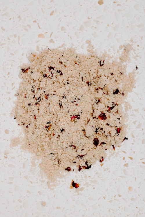 Ingredients: Pink Himalayan Salt, Dried Coconut Milk, Kaolin Clay, Sweet Almond Oil, Vitamin E Oil, Rose Essential Oil, Dried Rose Petals