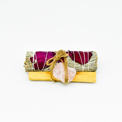 Invite love, friendship and improve all types of relationships with our beautiful, lovingly hand tied white sage bundles. Each bundle includes a palo santo wood stick, wildcrafted white sage, red rose petals and a rose quartz crystal!