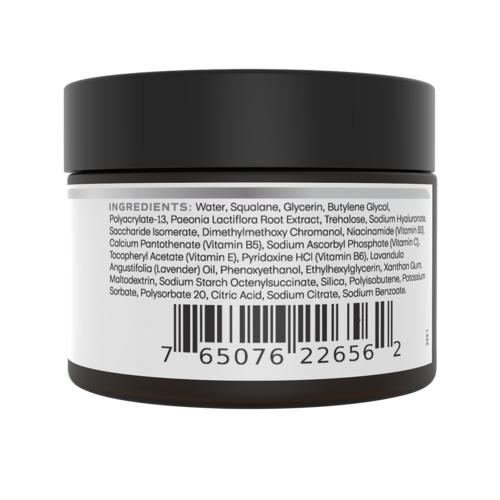 Water, Squalane, Glycerin, Butylene Glycol, Polyacrylate-13, Paeonia Lactiflora Root Extract, Trehalose, Sodium Hyaluronate, Saccharide Isomerate, Dimethylmethoxy Chromanol, Niacinamide (Vitamin B3), Calcium Pantothenate (Vitamin B5), Sodium Ascorbyl Phosphate (Vitamin C), Tocopheryl Acetate (Vitamin E), Pyridoxine HCI (Vitamin B6), Lavandula Angustifolia (Lavender) Oil, Phenoxyethanol, Ethylhexylglycerin, Xanthan Gum, Maltodextrin, Sodium Starch Octenylsuccinate, Silica, Polyisobutene, Potassium Sorbate, Polysorbate 20, Citric Acid, Sodium Citrate, Sodium Benzoate.