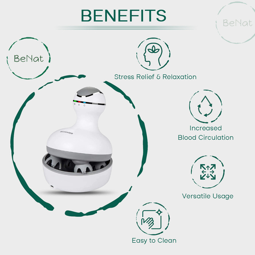 MULTIPLE SETTINGS: The hand-held head massager has 4-mode settings for options, including low speed (Clockwise and anticlockwise movement) and high speed (Clockwise and anticlockwise movement). You can select the low speed for a relaxing feel or the high speed for a more thorough massage. You can use this scratcher massager for the head, neck, back, or other body parts.