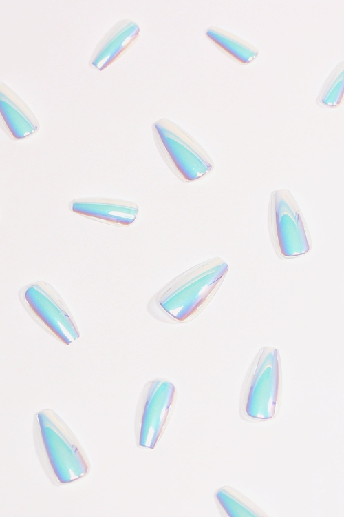 Immerse yourself in the effervescence of Soda Pop press-on nails, shimmering with a chrome finish that boasts a refreshing translucence. This design embodies the lively spirit of a carbonated delight, capturing the bubbly essence of your favorite fizzy treat in a manicure.