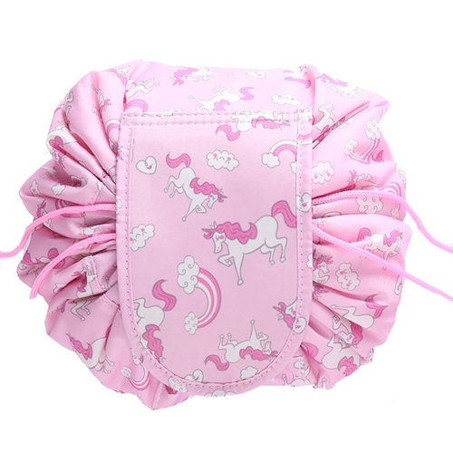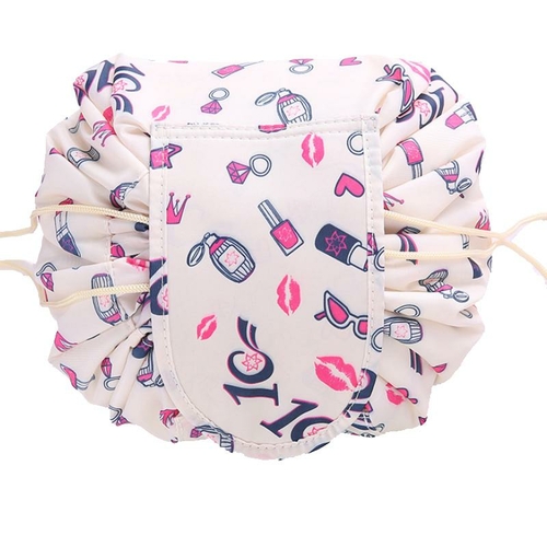 Use it once and you will be so glad you found this bag, which is practically round mat that you can spread on your vanity table and place all your make up essentials in it, find everything easily as everything is right there in front of your eyes, apply makeup nicely and quickly and cinch the drawstrings to close the bag securely in an instant!