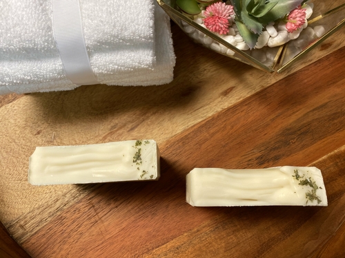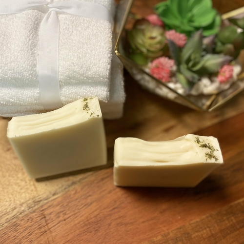 Enjoy thisĀ invigorating Tee TreeĀ soap topped with mint leaves. This soap will help replenish some moisture back into your skin with the additional castor oil. Use for body and normal hair. Enjoy the benefits of using a clean product free of nasty extra chemicals and detergents that harm the skin and health. Renew, relax and replenish your skin with this creamy lathering soap with medium size bubbles that will leave your skin feeling silky.
