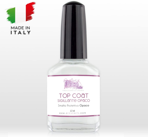 Top Coat Smalto Sigillante Effetto Opaco per Unghie chiamato anche Smalto Top Coat, viene Utilizzato come Finale nelle Manicure Tradizionali. E’ un Trattamento per unghie Utile e specifico per Sigillare e rendere l’unghia Lucida dopo l’applicazione di Smalti Tradizionali, di Adesivi Decorativi o di qualsiasi lavoro di Nail Art nella Manicure Tradizionale per ottenere una maggiore resa in termini di Lucentezza e Durata. Immancabile tra i prodotti per la manicure; Si consiglia di applicare Lo Smalto Top Coat su Superfici asciutte per evitare di trasportare via lo smalto sottostante. Un’applicazione su una superficie ancora umida provocherebbe sbavature del colore sottostante; La Rapida asciugatura all’aria e la Resistenza sulla superficie dell’Unghia conferiscono a questo Smalto Top Coat le caratteristiche d’essere Professionale e di alta qualità garantendo una finitura protettiva perfetta alla vostra manicure e pedicure andando in oltre ad aumentare la tradizionale tenuta di applicazioni nail art o smalto unghie tradizionale. Il lavoro finito sarà Lucidato e Sigillato a dovere con una sola passata garantendo così una duplice Qualità in pochissimo ‘aria in pochi minuti. Il Top Coat si presenta di colore trasparente sull’unghia per cui ha la capacità di ravvivare i colori stesi sotto senza mai andare a modificarne il colore donando nel contempo all’unghia finita un effetto lucido d’effetto. Ti suggeriamo di vedere il video tecnico dell’uso di questo importante articolo, così da approfondire il metodo di utilizzo ed approfondire nel dettaglio l’applicazione sia su unghie di mani che piedi. Formato da 12 ml
