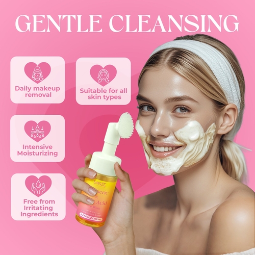 ăEasy to UseăSAISZE Turmeric Cleanser adopts a foaming formula, just wet your face, apply the cleanser with your fingertips or a wet towel, and gently massage in circular motions. Rinse thoroughly with warm water to enjoy a refreshing cleansing experience and a refreshed complexion.