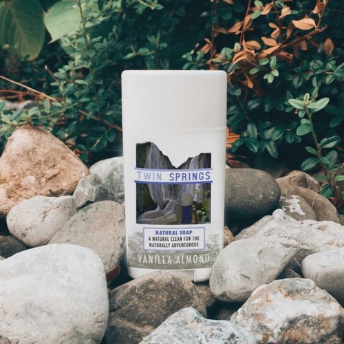 Enjoy your next adventure with Twin Springs Vanilla Almond Soap Stick! Handcrafted from scratch, Vanilla Almond includes saponified sweet almond oil. We craft our soap into the travel container using the cold process approach, preserving the beneficial properties of these organic oils making our soap gentle, soothing, and super soft! Perfect for traveling, camping, backpacking, hiking, or any event when life is on the go! Enjoy the generous, bubbly lather wherever life may take you. It’s the perfect natural way to stay clean!
