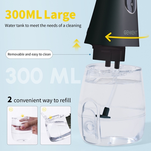 GENKENT Water Dental Flosser Cordless for Teeth Cleaning, Black