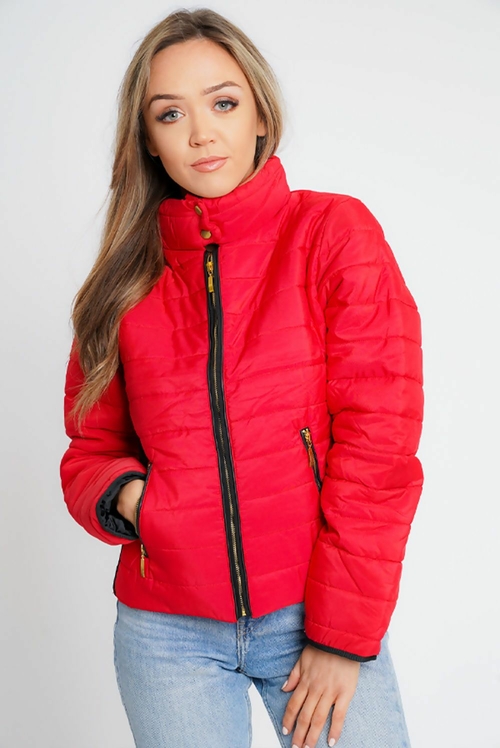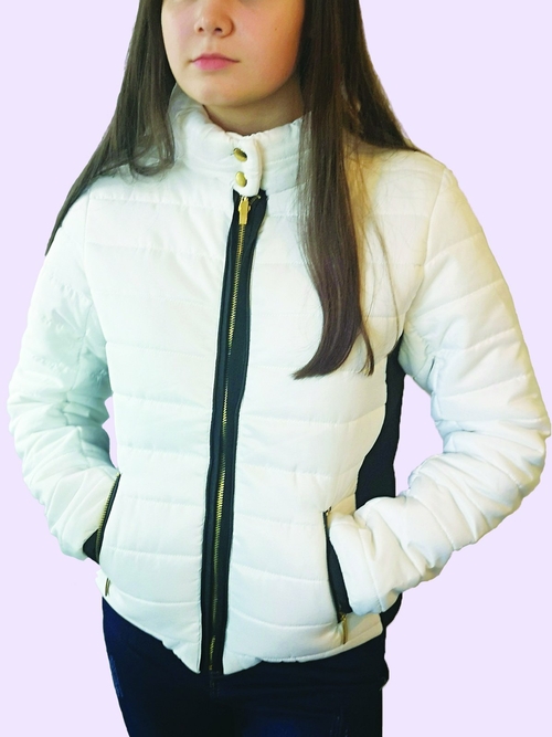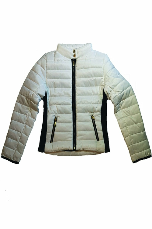White With Black Contrast Puffer Jacket