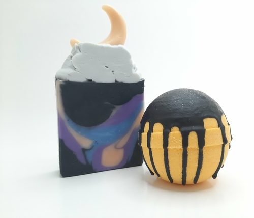 Babbasu Oil, Castor Oil, Safflower Oil, Olive Oil, Shea Butter, Distilled Water, Lye, Fragrance Oil, Mica, Titanium Dioxide, Tin Oxide, Iron Oxide, Ultramarine Blue, Activated Charcoal, Glycerin, Sodium Stearate, Sodium Myristate, Sorbitol, Sorbitan oleate (emulsifier) Oat Protein.